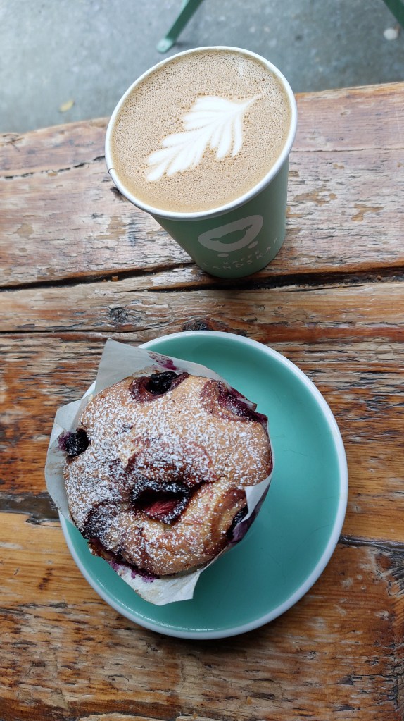 - Gibt es eventuell ein Stück Gebäck oder Kuchen? Ja, aber das Angebot ist eigentlich überall sehr ähnlich: Cookies, Muffins, Bananabread, Croissants. (Ein sehnsuchtsvoller Gedanke an Zuka oder Gil Avnon in Berlin sei mir hier gestattet)