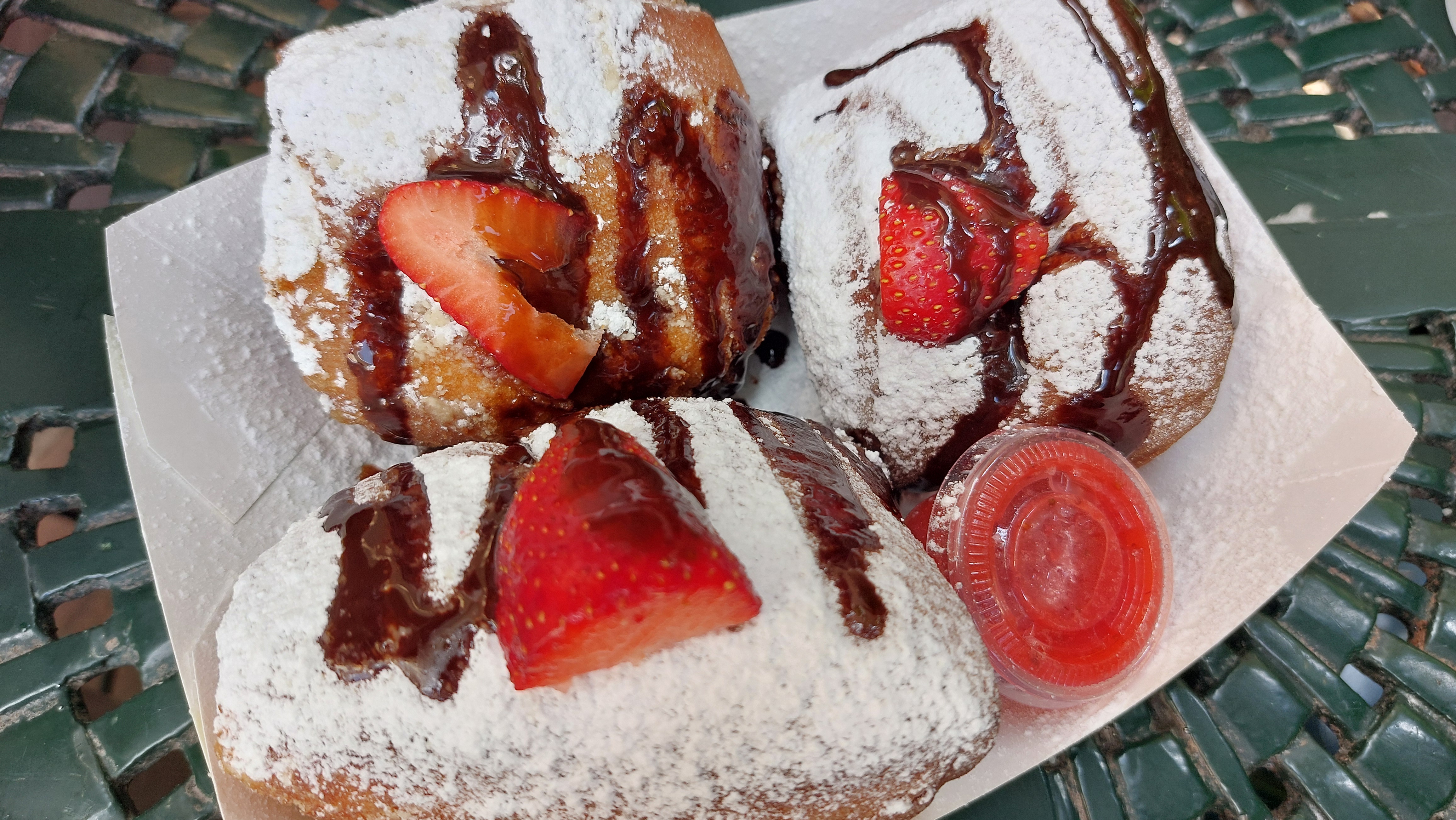 Nur weil ich zuletzt von „versumpft“ geschrieben habe, fange ich heute mal mit einer Sache an, die man in New Orleans möglichst nicht machen sollte: Des Nachts in der Bourbon Street versumpfen. Das Sträßchen, dass tagsüber verlassen vor sich hin schläft, entpuppt sich nachts als DIE Partymeile der USA. Da schützen wir uns doch lieber hinter unserem jeweiligen Alter (unter 21 darf man hier nicht in Bars, über 50 will man vielleicht nicht mehr in solche Bars) und schlürfen unseren Mocktail oder Cocktail in gediegeneren Restaurants, bei denen man dann gleich auch noch die gepriesene kreolische Küche ausprobieren kann. Mit Tipps einer Mitsängerin in NY haben wir uns hier ganz gut durch das Angebot navigiert und auch die bekannten „beignets“ nicht ausgelassen.