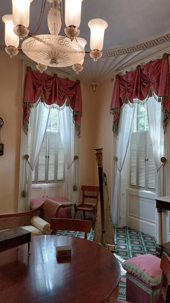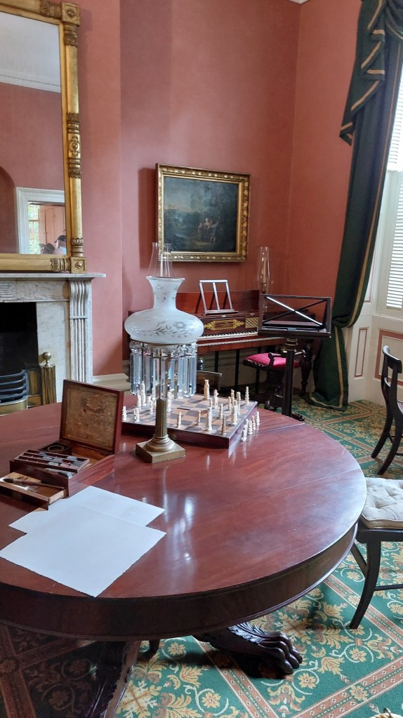 Wir haben es aber wieder in das Zentrum Savannahs zurück geschafft und den Nachmittag noch genutzt, um uns das „Owen Thomas House and Slave Quarters“ anzuschauen. Eine engagierte Museumsführerin hat uns durch das 1819 gebaute Haus und die Nebengebäude geführt und uns zahlreiche Details über die Herrschaften, aber auch die versklavten Männer und Frauen berichtet, die dort gearbeitet haben. Der Fokus auf die oft namenlosen oder mit fremden Namen versehenen Bediensteten ist eine Perspektive, die das Museum erst seit dem Umbau 2019 in den Mittelpunkt gerückt hat, und aus der ein paar althergebrachte Überzeugungen hinterfragt und Unwahrheiten der früheren Geschichtsschreibung entlarvt werden.