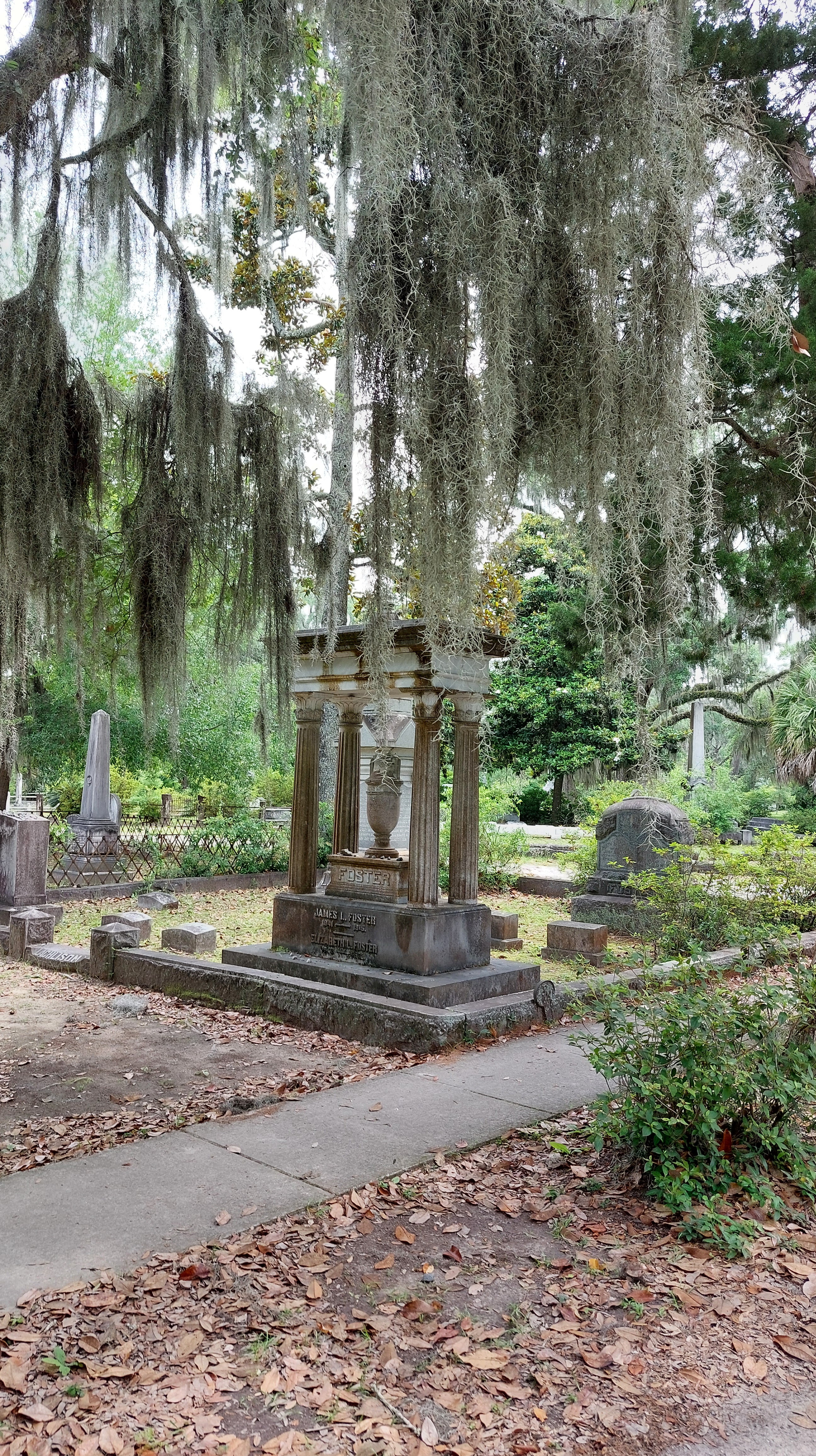 Unser zweiter Tag in Savannah begann im Zeichen der „Dead ends“. Und ich hoffe, man möge mir mein Augenzwinkern an dieser Stelle nicht als Respektlosigkeit auslegen. Passend für den Memorial Day hatten wir uns vorgenommen, den Bonaventure Cemetery aufzusuchen, der ein paar Meilen vom historischen Zentrum Savannahs entfernt ist. In unserem Stadtführer wird er als Inbegriff für „Southern Gothic“ gepriesen und abgesehen davon war die Nekropole Schauplatz für einen weiteren Film, nämlich „Midnight in the Garden of Good and Evil“ (der mir zugegeben nichts sagt; ich bin allerdings auch kein Fan von Gruseligem).