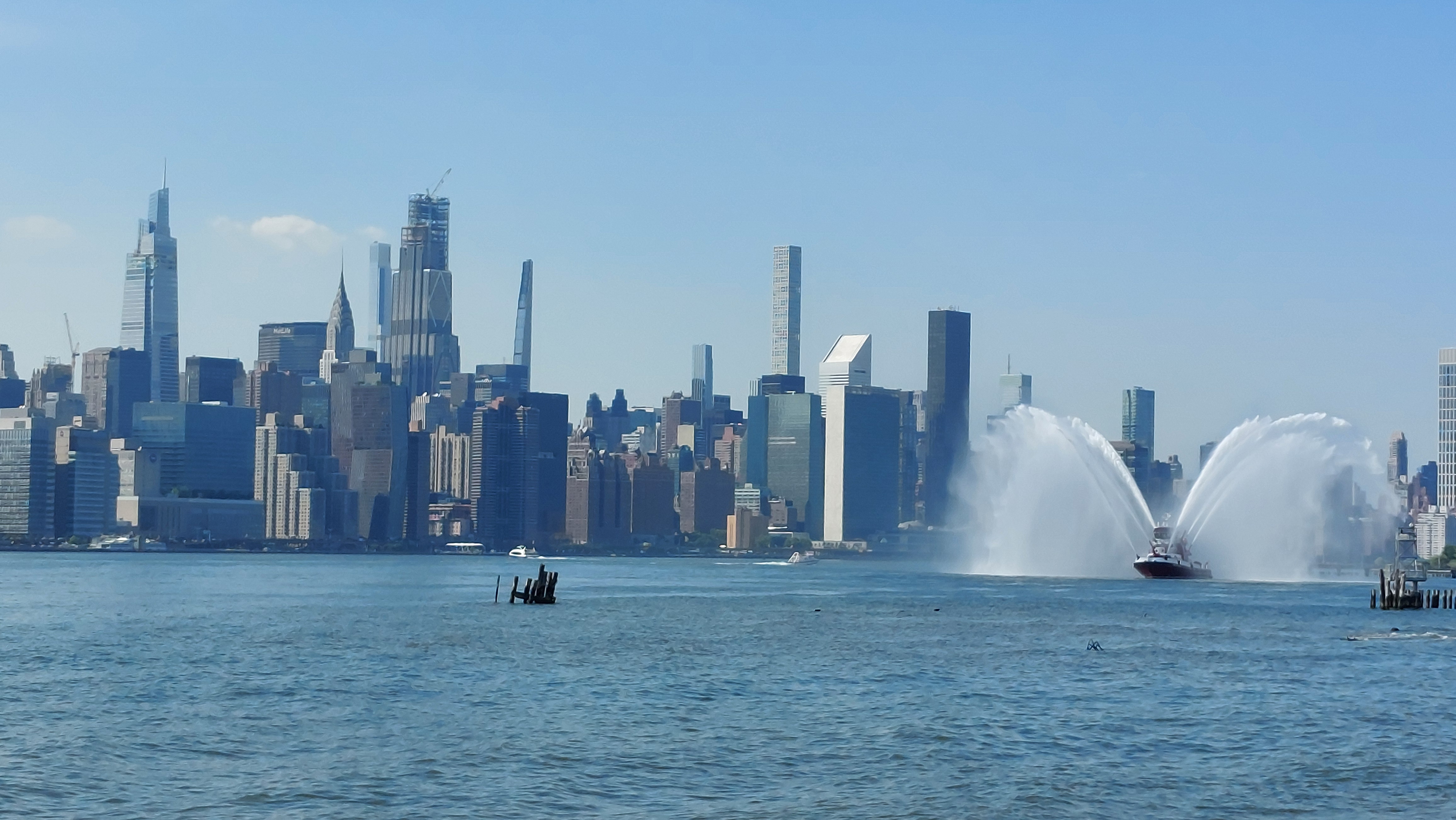 Durch die Stadt bin ich ja heute noch gezogen, aber jetzt reicht es mit Schwitzen. Ich nehme mir hitzefrei. Für Euch gibt es zumindest ein paar visuelle Impressionen aus der aufgeheizten Stadt: Thermometer in der Nähe von Hudson Yards, Meltdown einer Statue am Rande der Highline, Badende im Brunnen des Washington Park, Sonnenschirme beim Sommerkonzert der Met im Brooklyn Riverside Park. Und die Feuerwehr veranstaltet auf dem East River kleine Wasserspiele.