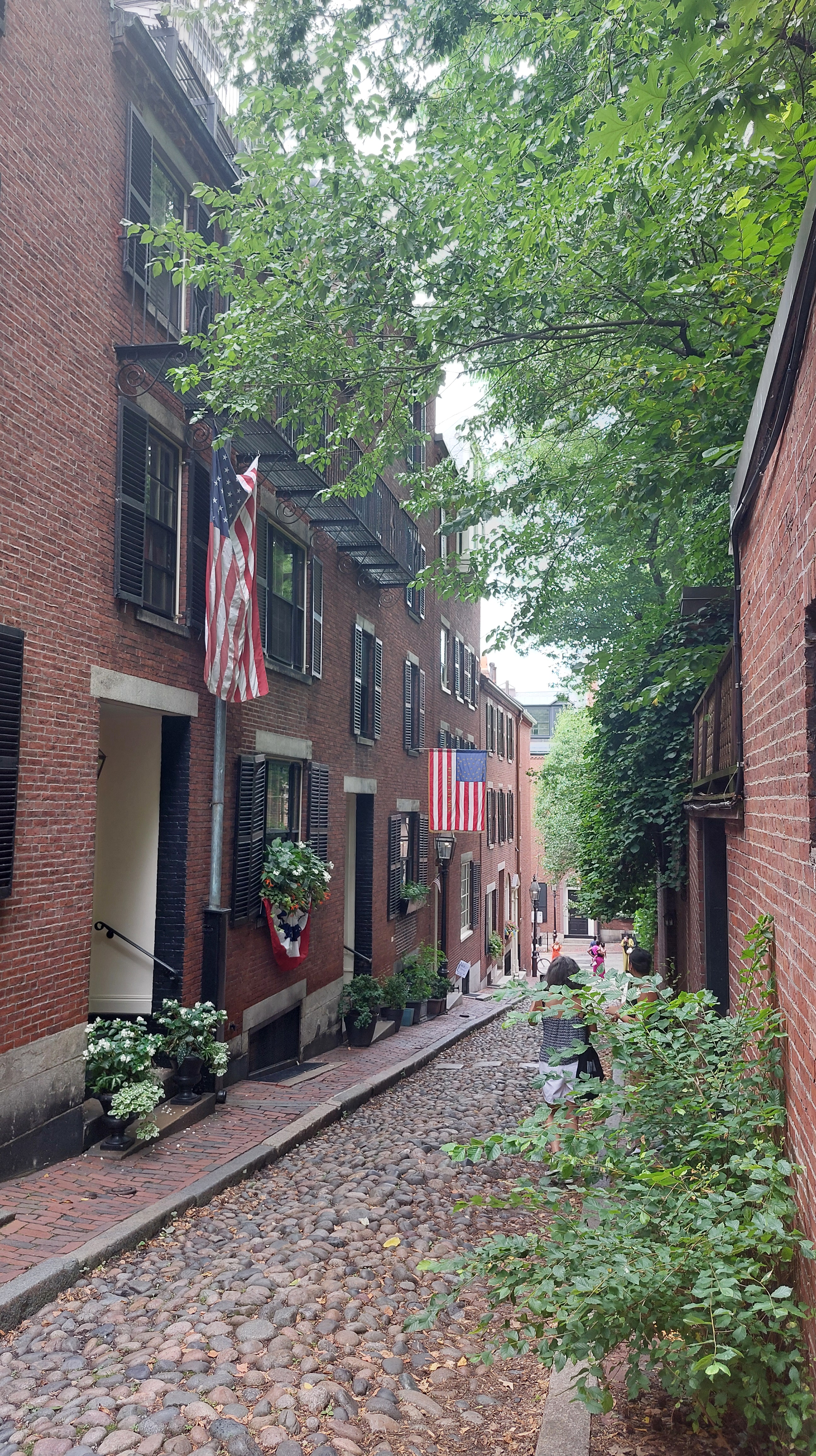 Unser Spaziergang hat uns dann weiter durch Beacon Hill mit einer der malerischsten Straßen, Acorn Street geführt. Mit ihren sehr unebenen Cobble Stones ist sie die Touristenattraktion, aber das ganze Viertel ist wirklich eine schöne und wohlhabende Gegend. Das gilt auch für das angrenzende Viertel Back Bay, in dem man alte Häuser bewundern und gepflegt shoppen kann. Und, hier konnte ich natürlich nicht widerstehen, eine beeindruckende Public Library mit Lesesaal, Springbrunnen und Arkaden sowie einem noblen Tea House kann man auch noch entdecken. Morgen mehr!