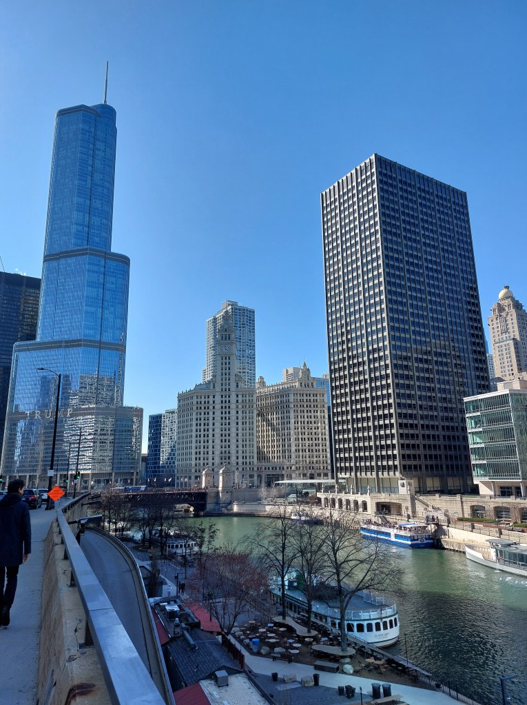 Zum Beispiel gibt es da das alte Wrigley-Hochhaus, das von dem Kaugummi-Erfinder in Auftrag gegeben wurde und eines der ersten großen Häuser war, die nördlich des Chicago-River entstanden sind. Jetzt bildet es den südlichen Ausgangspunkt der Einkaufsstraße „magnificent mile“. Dann sind da diverse zu Wohnungen umgebaute Lagerhäuser, von denen eines früher als gigantische Gefriertruhe benutzt wurde. Die Wände waren so tief eingefroren, dass sie sechs Monate lang auftauen und die Mauern durch zusätzliche Metallstreben gefestigt werden mussten. Ein weiterer Skyscraper am Ufer beeindruckt durch seine extrem schmale Grundfläche, über der sich ein deutlich breiteres Bauwerk befindet. Das Geheimnis dahinter ist, dass die tragende Konstruktion rund 30 Meter tief in die Erde getrieben wurde – auf dem schmalen Grund, der nicht von unterirdisch verlaufenden Eisenbahnschienen belegt war.
